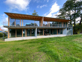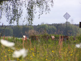Staudenbeete am Haus, Wege zum See durch Naturwiesen und eine Liegewiese und Sitzgruppen am See. Separat eine Spielwiese mit Volleyballfeld. Zwei Stege zum Baden und um zum Wassersport aufzubrechen, mit Paddel-,Segel- oder Motorboot.